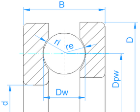 축방향 깊은 홈 볼 베어링의 경우 공칭 접촉각은 90°입니다. 기본 적합성은 fi = fe = 0.535입니다.