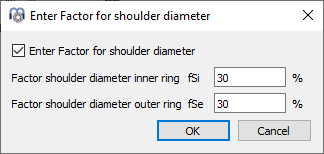볼 베어링과 레이디얼 원통형 롤러 베어링의 경우 내륜과 외륜의 숄더 직경을 정의할 수 있습니다. 테이퍼 롤러 베어링의 경우 내부 레이스의 숄더를 정의할 수 있습니다. 0을 입력하면 고려되지 않습니다.