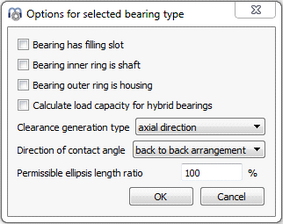 For double row angular contact bearings, the configuration of contact angles can be defined in the options dialog.