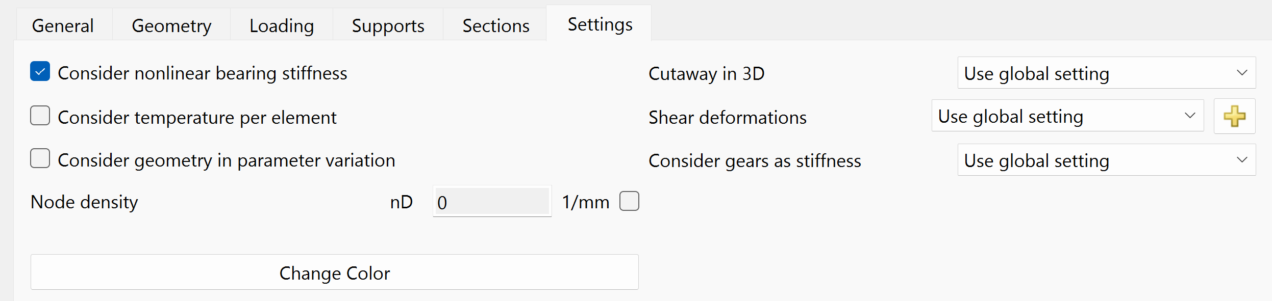Some settings can be entered for a single shaft: